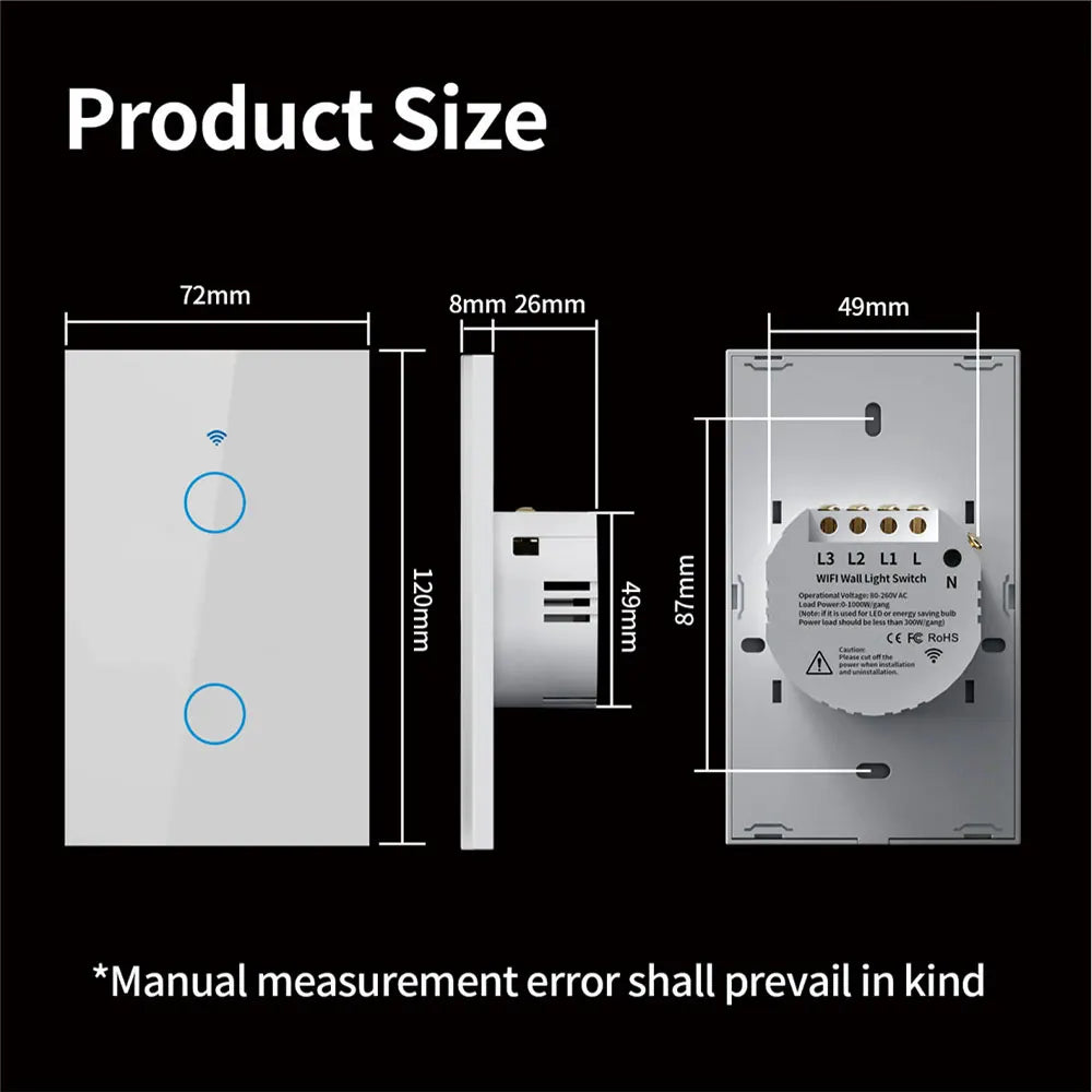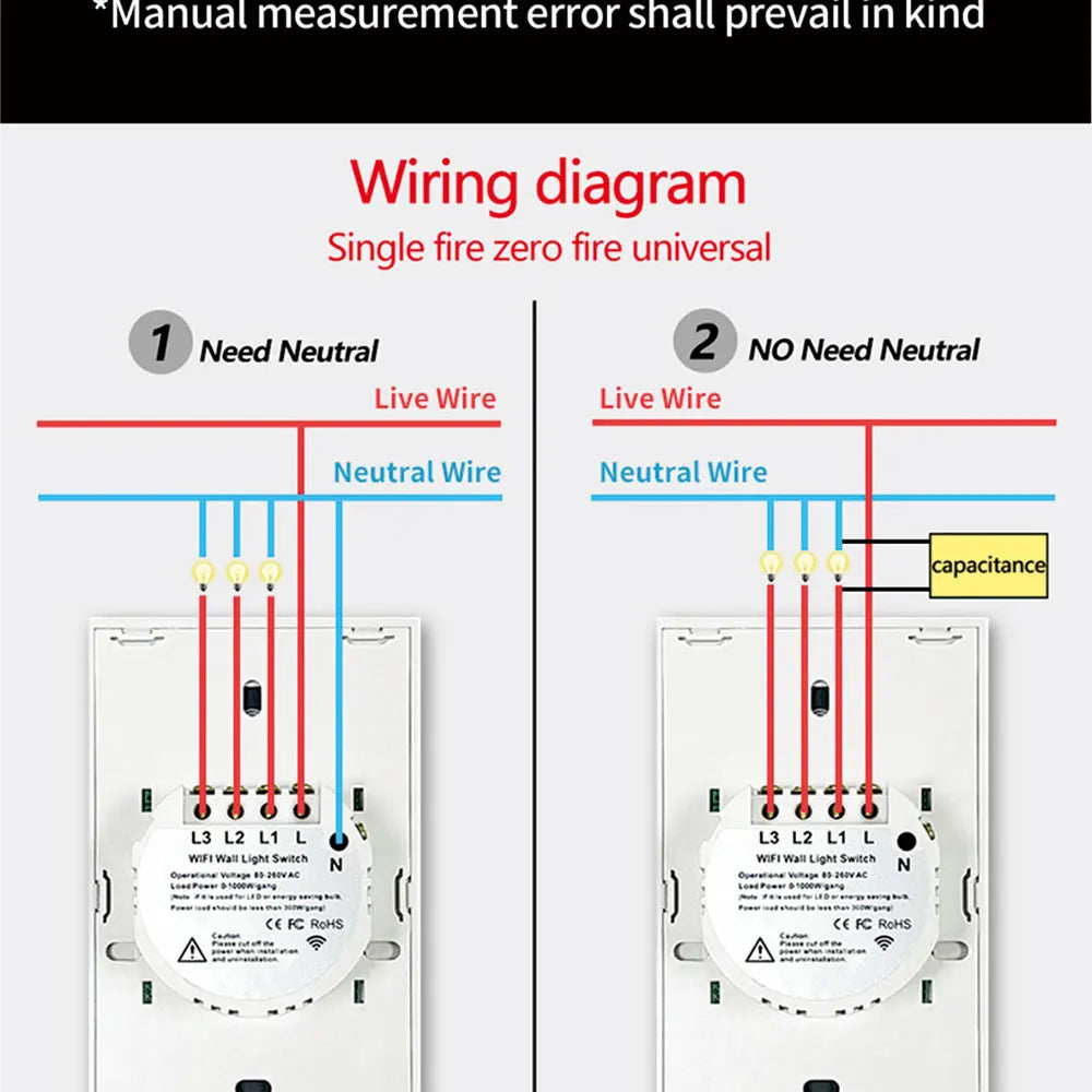 Tuya US WiFi Smart Wall Switch RF433 1/2/3/4 Gang No Neutral Wire Touch Sensor LED Light Switches Smart Home Alexa Google Home