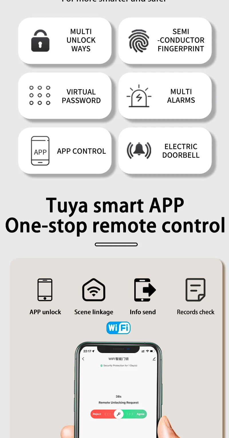 Ways To Unlock: App,Mechanical Keys,Card,WiFi,other,Password,FINGERPRINT
